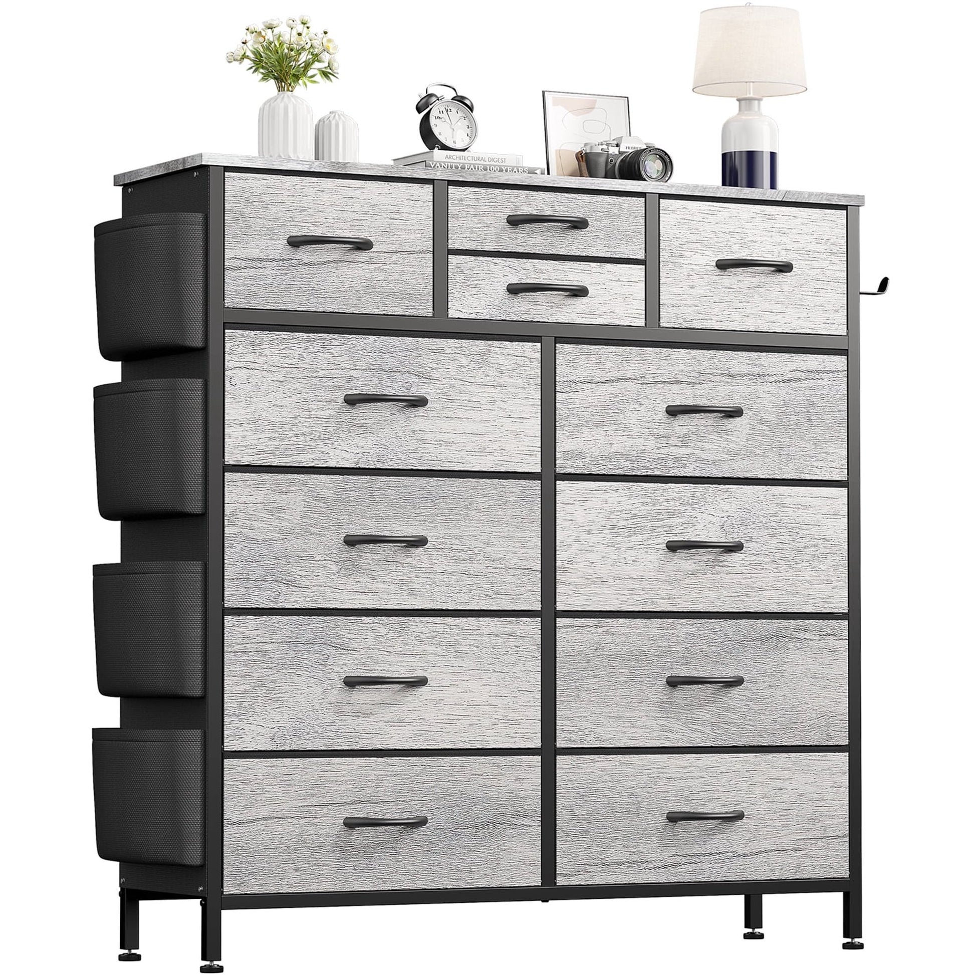 AOWOS modern dresser chest of drawers, 12 drawers minimalist chest of drawers for bedroom. Features adjustable feet and a wall mount for added security and stability. Perfect for storing sportswear, blankets, scarves, socks and other clothes or household items, with 8 large, 2 medium and 2 small drawer sizes to suit your storage needs. Sturdy and reliable construction includes a waterproof top, waterproof MDF wood worktop and sturdy steel frame. Large work surface, 38.8" top surface provides plenty of room to decorate with your favorite decorations. Seamlessly integrated, ideal for foyers, bedrooms, living rooms, nurseries, hallways, offices and more. Simple and fashionable designs can be adapted to different styles of homes, suitable for living rooms, bedrooms, dressing rooms, hallways, and other places. With the installation guide, it is easy for you to complete the installation process