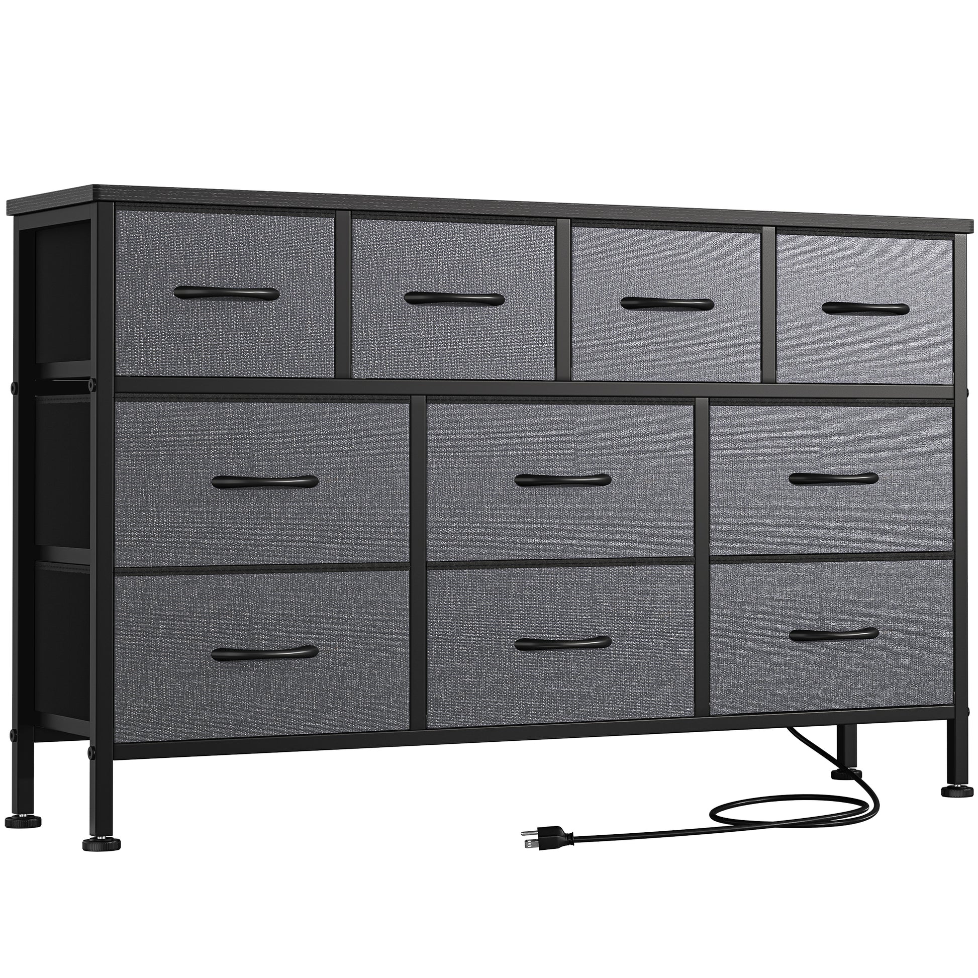 - Dresser TV Stand with Drawers for 55": This wide dresser measures 11.81"D x 43"W x 31"H, its wood top holds 110 lbs and is very suitable for placing TVs up to 55". 10 fabric drawers are great for storing CDs, DVDs, game controllers, etc. We use more advanced metal to make the frame, which makes the TV stand for bedroom very stable and durable.