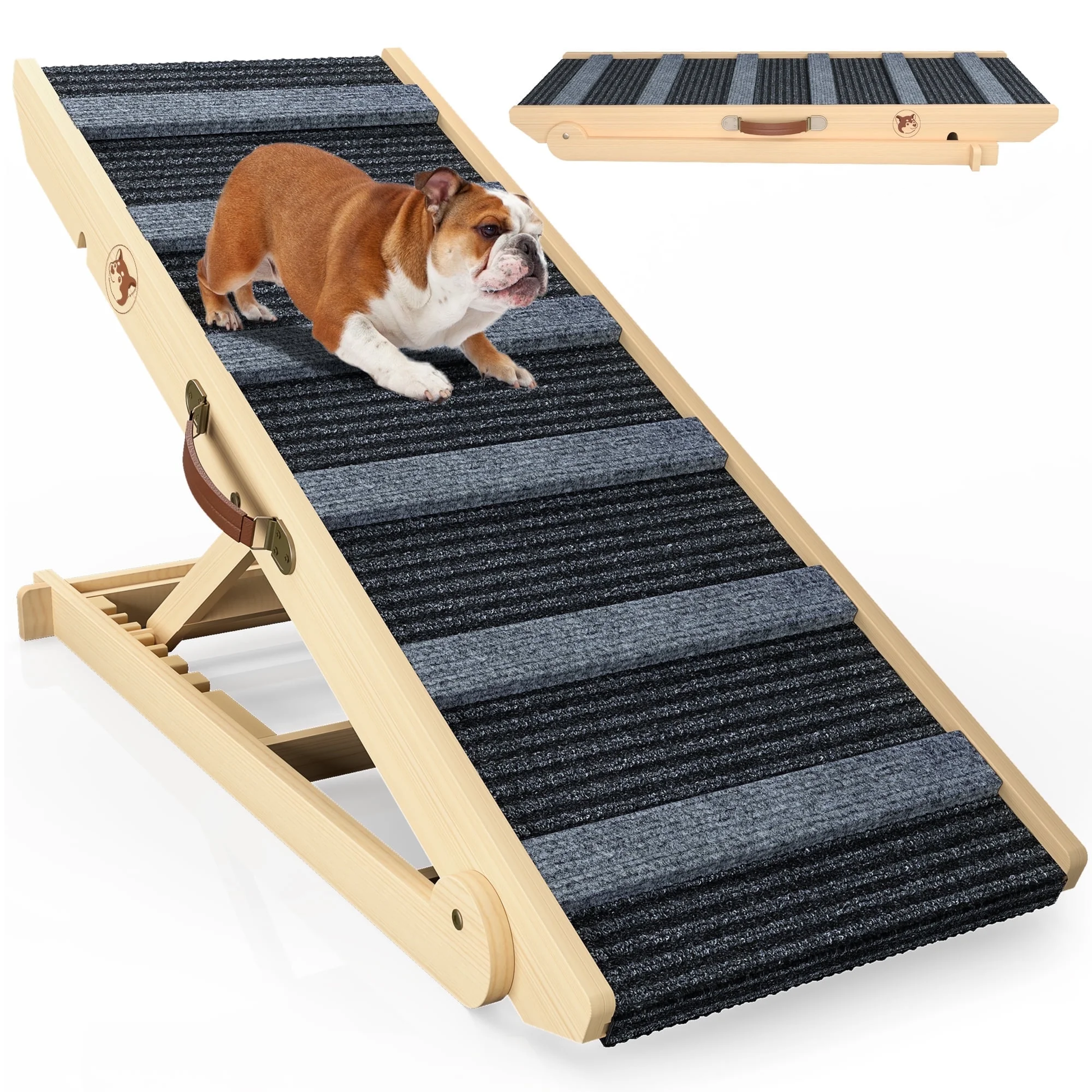 GIKPAL Adjustable Dog Ramp for Couch, Bed, Car, Wooden Pet Ramp for Small and Large Dogs & Cats, Height from 10.8" to 26.6"(Supports up to 150LBS)