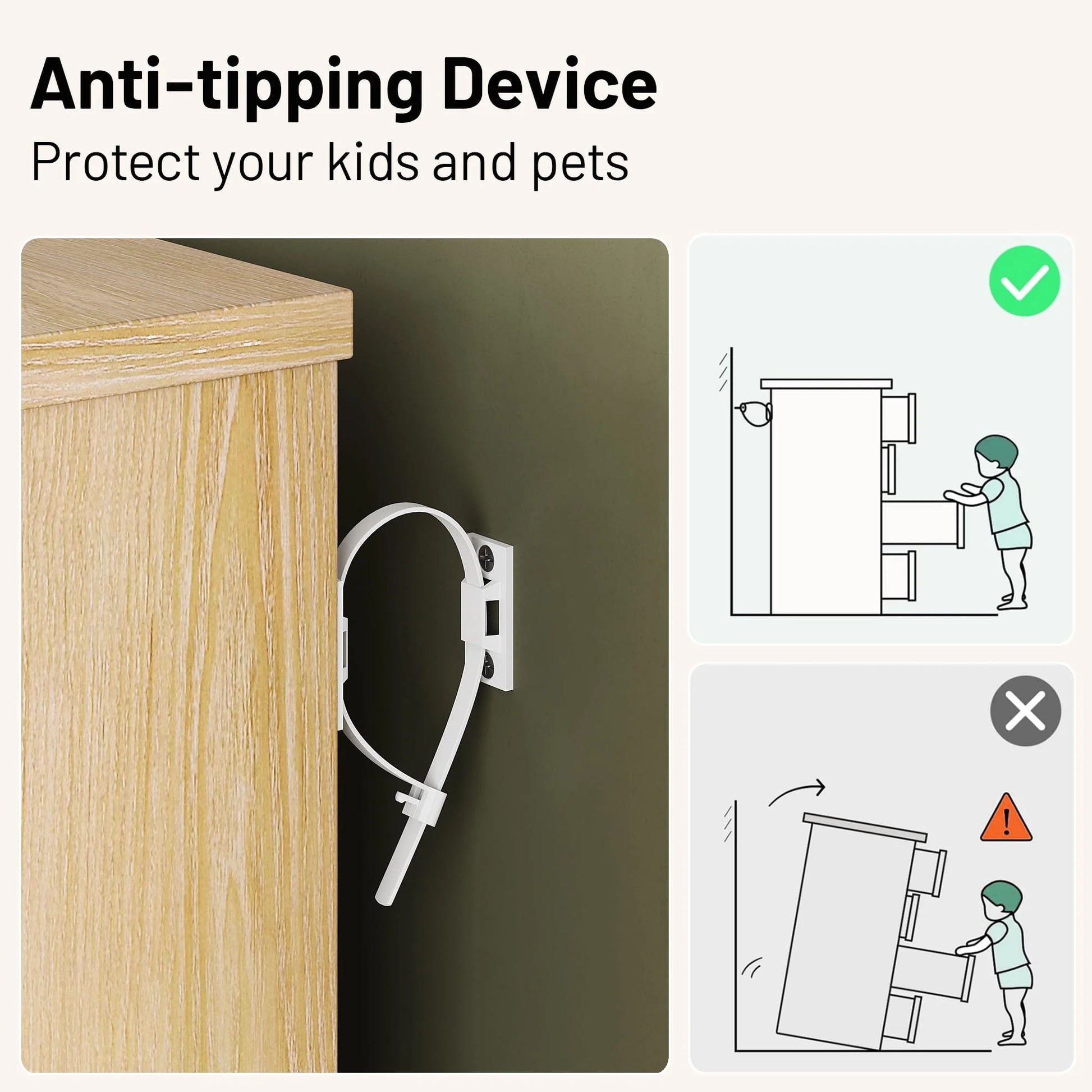 Durable Build: Crafted with a sturdy wood frame, metal handles, and five solid wood legs, this drawer dresser provides stable support. An anti-tip device secures it to the wall, ensuring safety and durability. Each drawer supports up to 22 lbs, making it both practical and long-lasting.