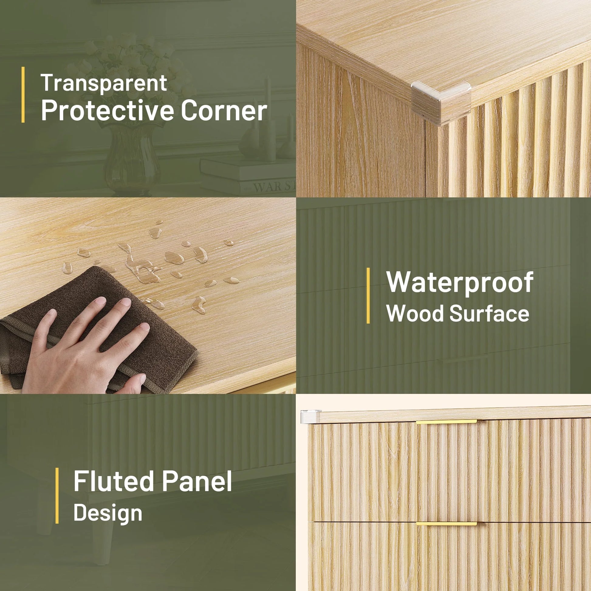 Boho Minimalist Design: Featuring wave-like fluted panels, this dresser for bedroom adds texture and visual depth to any space. Its clean lines and design exude modern elegance, creating a unique aesthetic that complements various styles and décor.