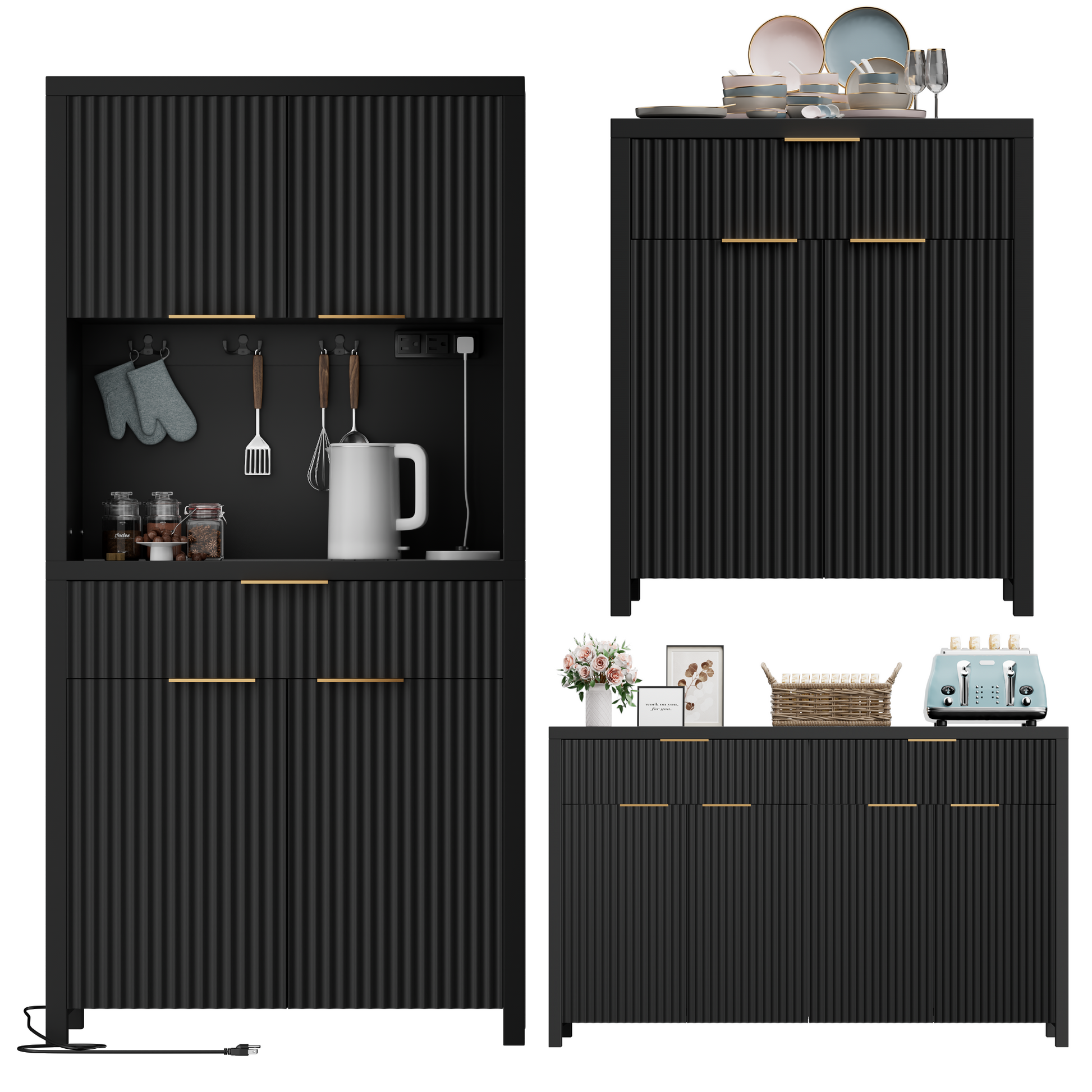 Upgrade your home with the GIKPAL pantry and buffet cabinet set, designed with a modern wave-textured surface to blend seamlessly into any kitchen, dining room, or living space.